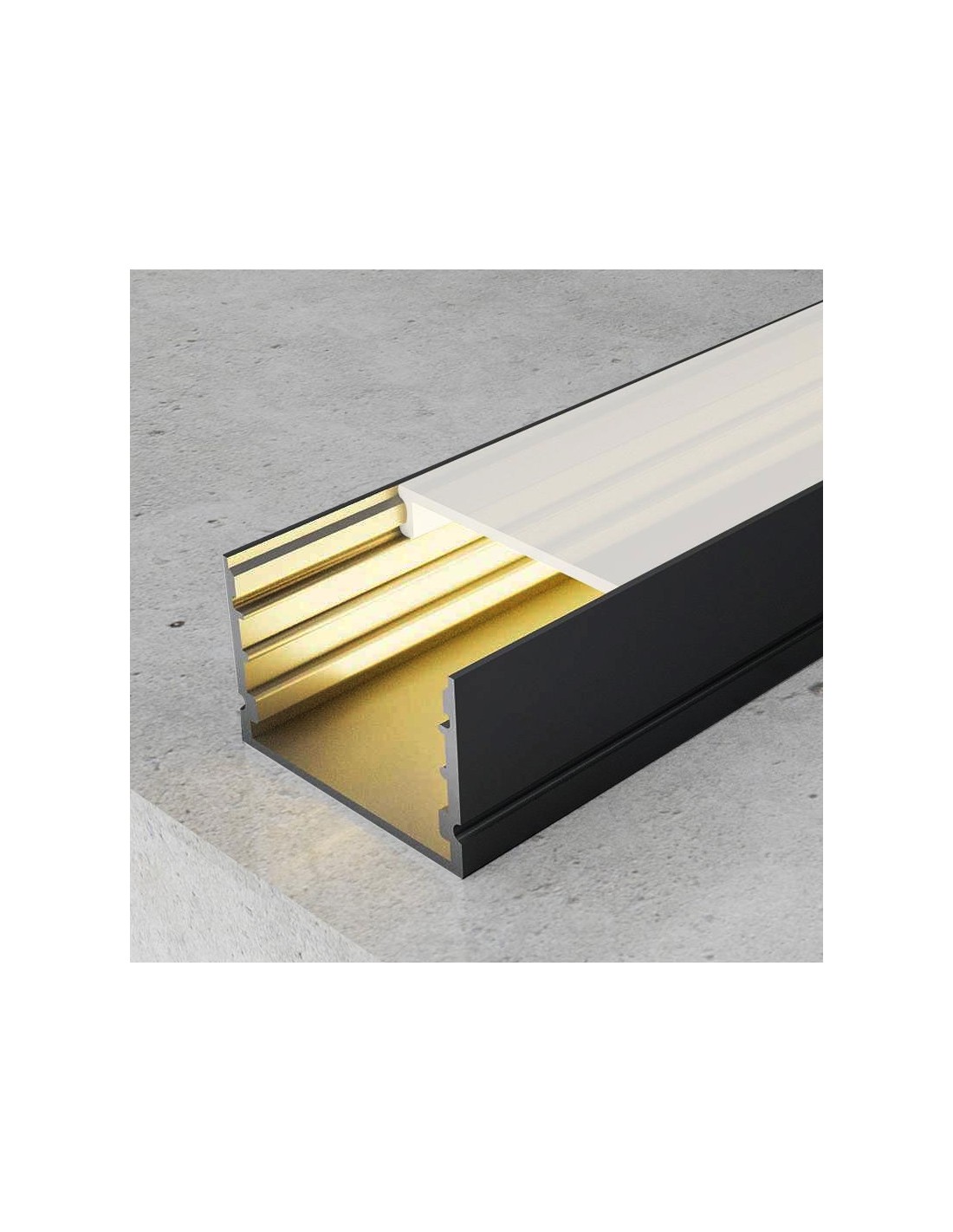LM3778. Perfil de aluminio superficie 2 metros color negro con tapa opal.