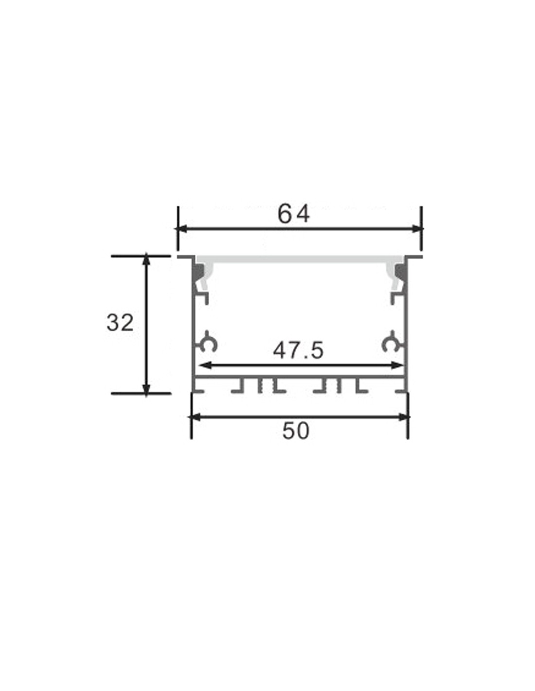LM3791. Perfil aluminio Epyf 2 metros. Dimensiones: 2000 X 32 X 64mm.