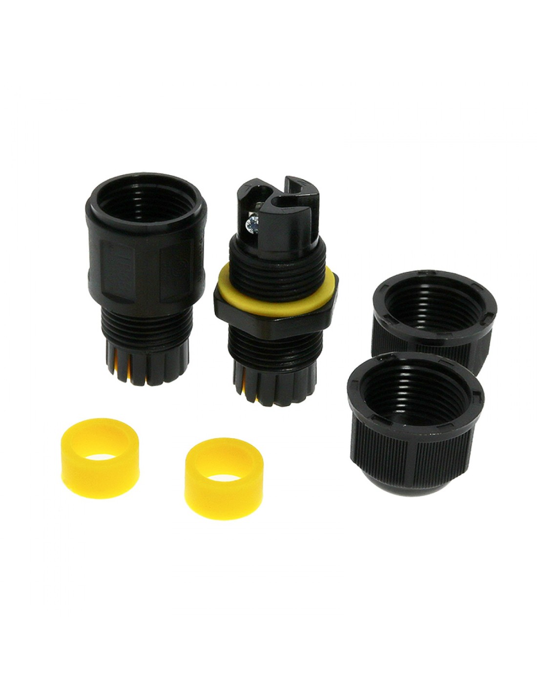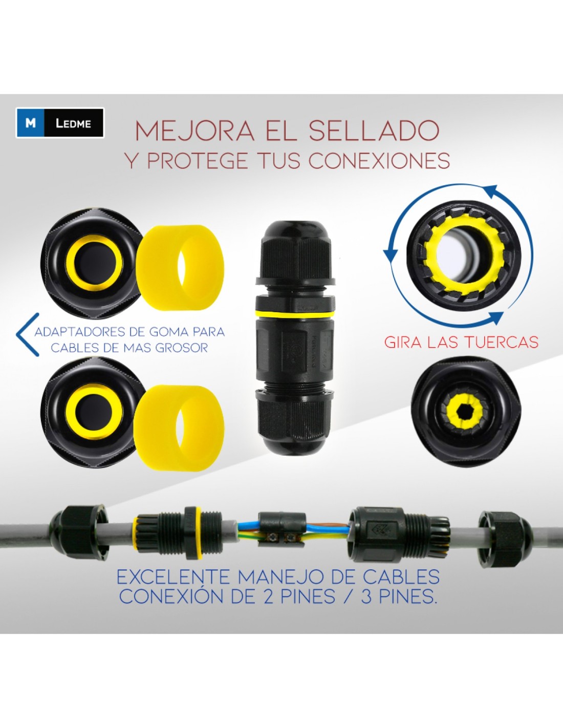 Conector de cables apto para exterior (IP68). Para conectar y proteger de la intemperie 2 cables.
