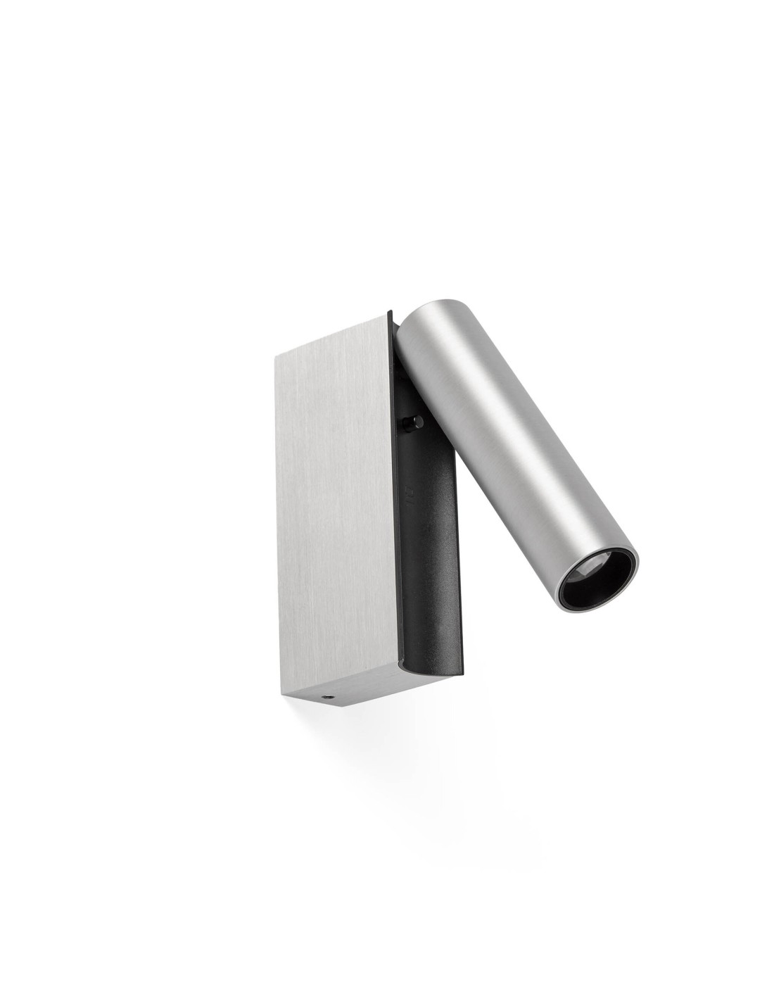 Aplique de pared fabricado en aluminio cepillado. Dispone de un chip de led integrado de 4W de consumo que es dirigible y se puede tanto bascular como rotar. Proporciona una luz cálida.