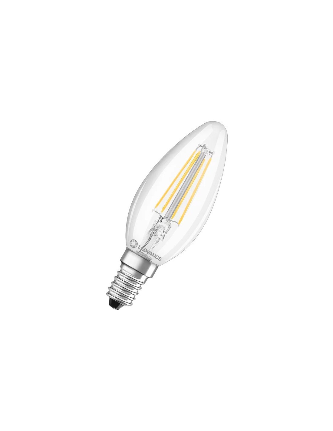 Ledvance Classic B40 Value Class. Bombilla led vela clara enteramente de cristal 220-240V 4W 2700K E14. 470 Lumen. Equivalente a incandescente de 40W. 10.000 Horas. Dimensiones: 100 X 35mm. Luz calida.