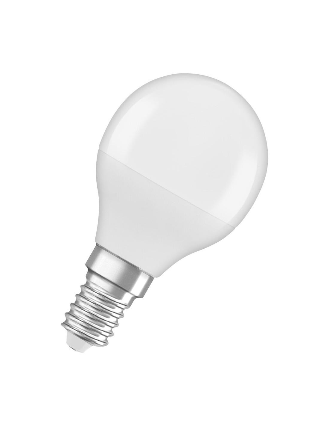 Osram Led Star Classic P40. Bombilla led esférica mate 220-240V 4,9W 4000K E14. 470 Lumen. Equivalente a incandescente de 40W. 15.000 Horas. Dimensiones: 79 X 45mm. Luz neutra.