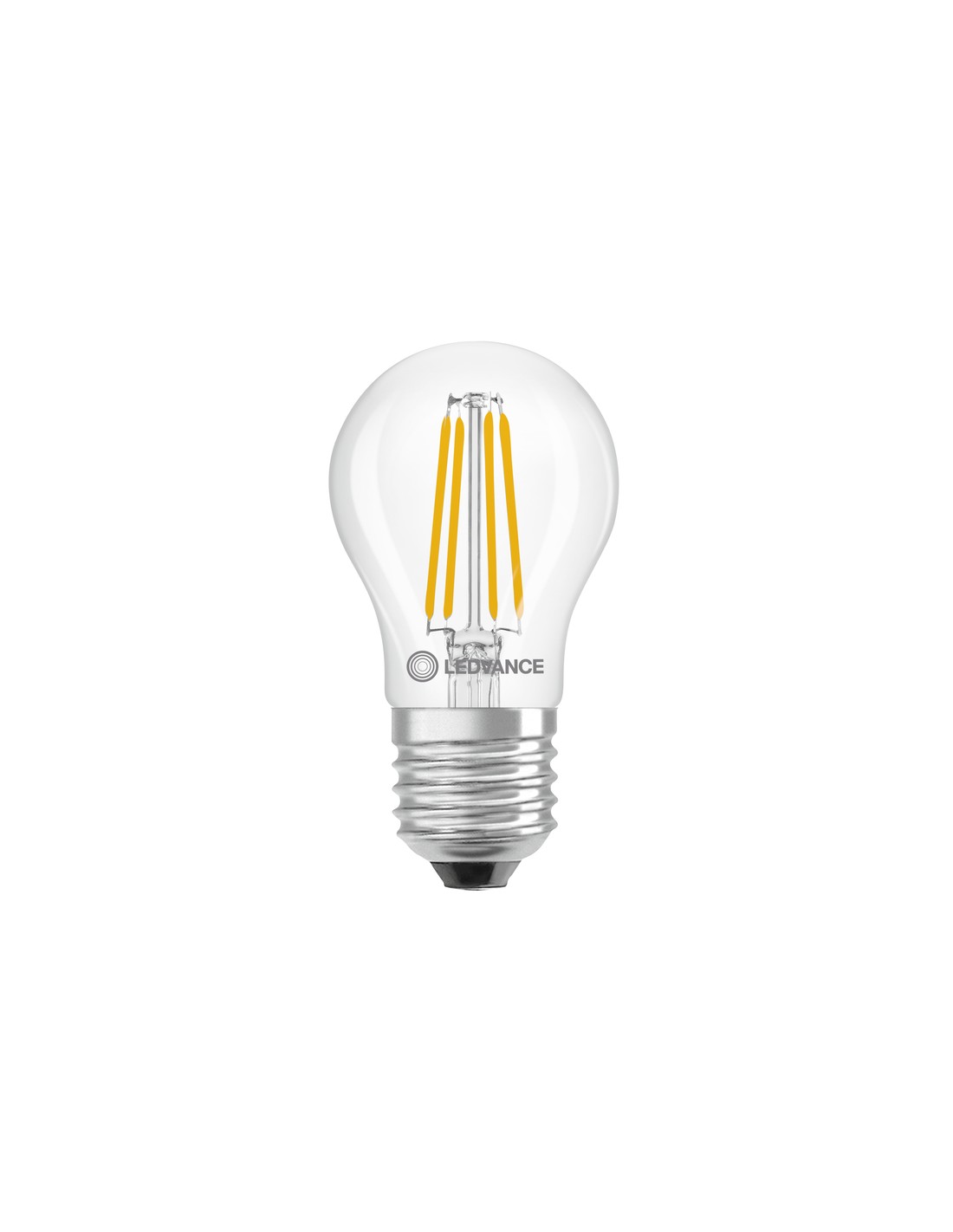Bombilla led en formato esférico y con el cristal en claro. Su tono de luz es en blanco cálido. Representa un importante ahorro en rellación a los modelos incandescentes ya que su consumo es muy inferior y las horas de vida muy superiores.
