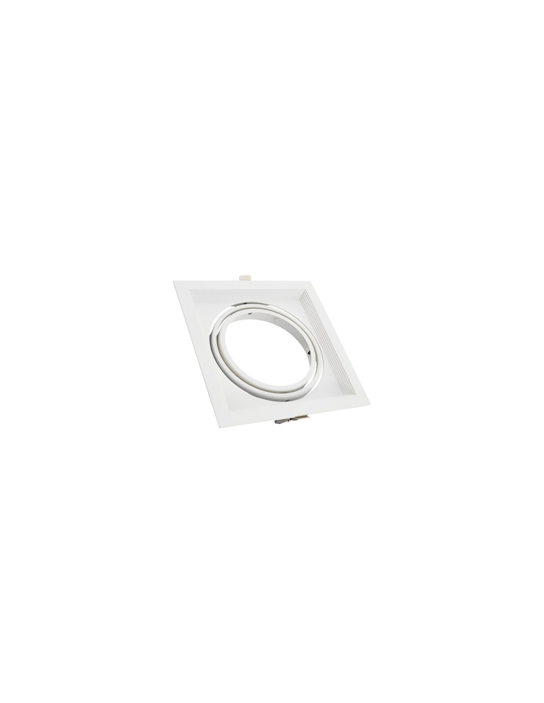 Iglux CP10-BL. Aro cardan plano para AR111 color blanco.  Dimensiones: 185 X 185 X 43mm. Corte en techo: 165 X 165mm.