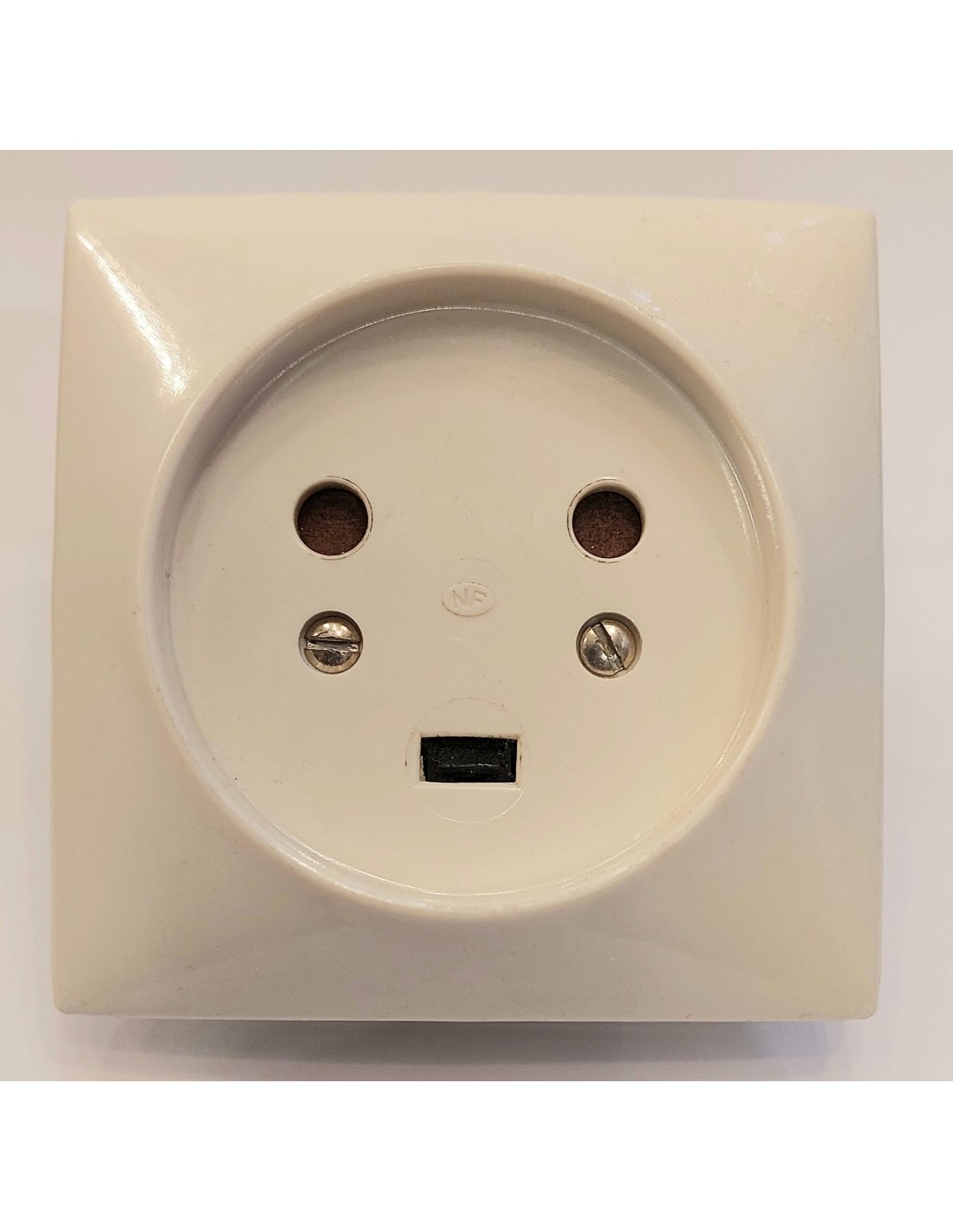 Enchufe de empotrar de 3 pin con toma de tierra color marfil.