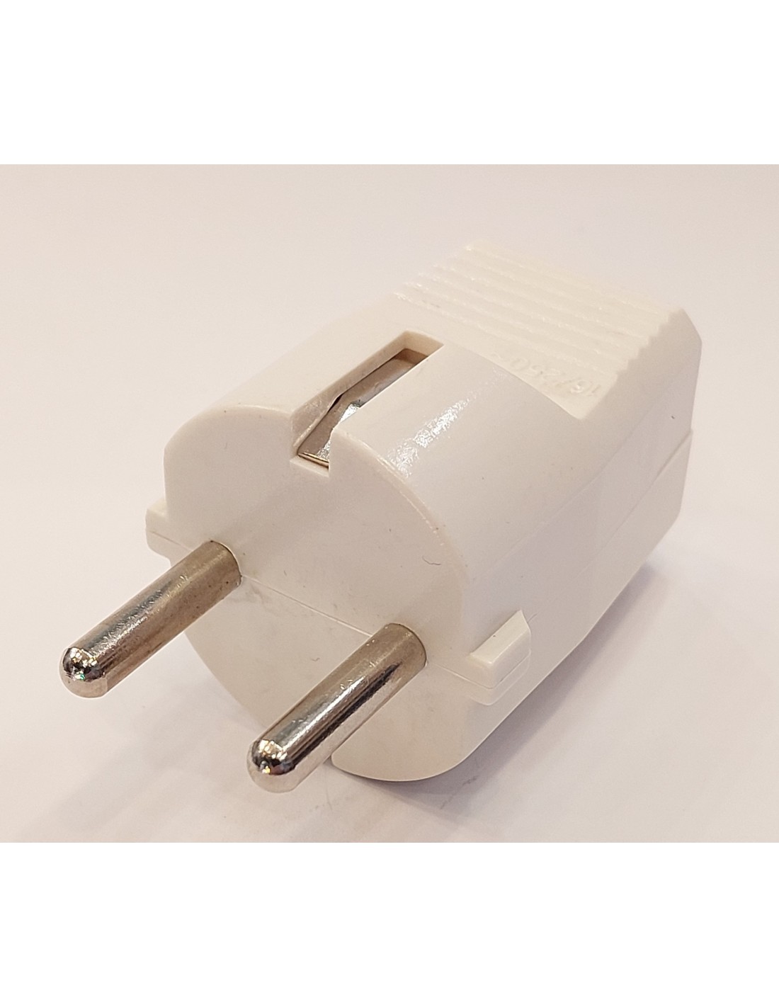 Hepoluz 01345. Clavija schuko macho con TT color blanco. 16A/250V