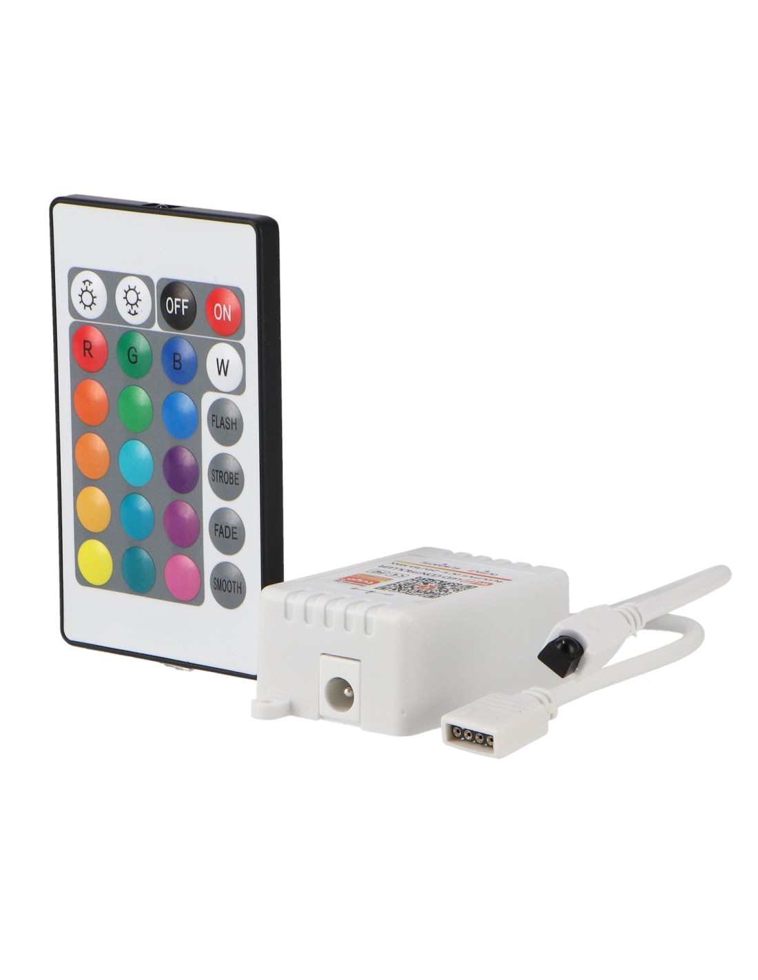 LM2187. Controlador regulador tira led RGB 12-24v con control remoto IR. Potencia máxima: 72W (12V), 144W (24V).