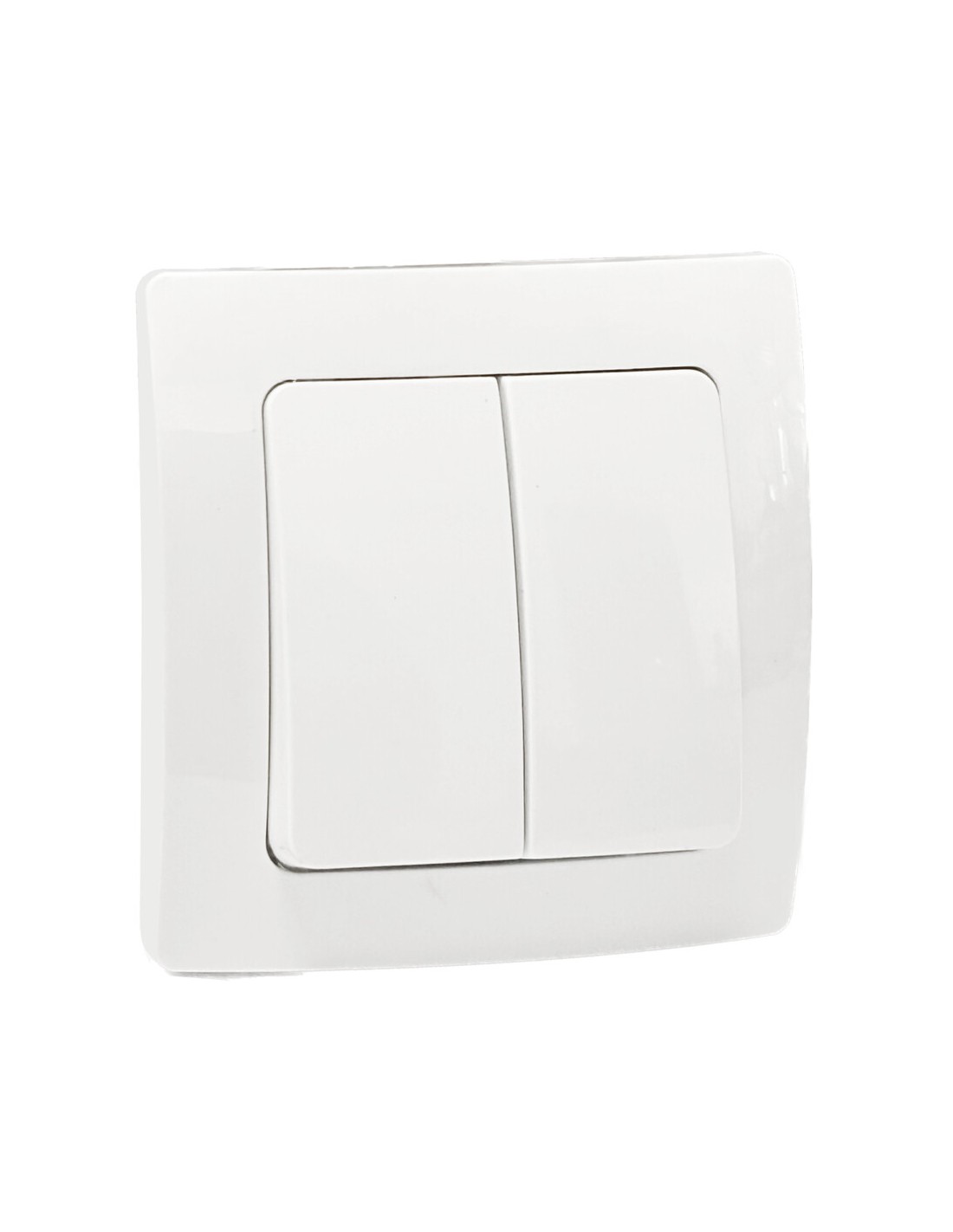 Electro DH 36.535/DC/B doble conmutador empotrado blanco 250V/10A. Dimensiones: 80 X 80 X 12mm.