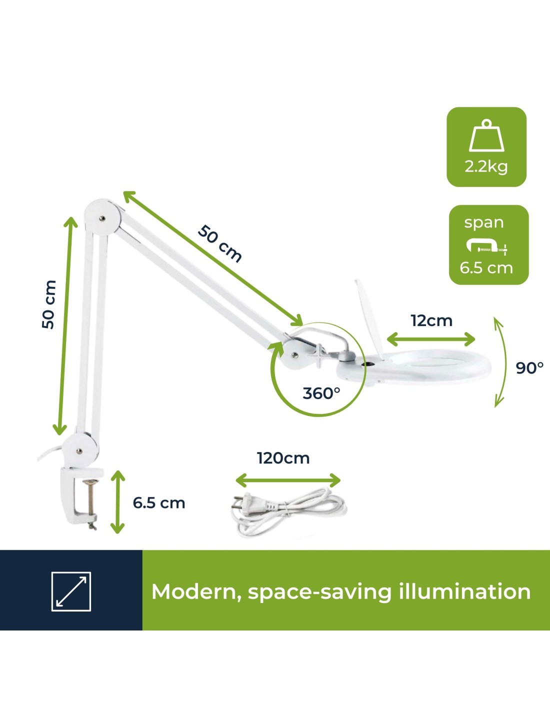 Velleman VTLAMP2WN. Lupa de Gato 5 Dioptrias color blanco. Viene con tubo fluorescente circular T9 22W 6400K. 1050 Lumen. 230V. Longitud brazo: 105mm. Diámetro lupa: 120mm.