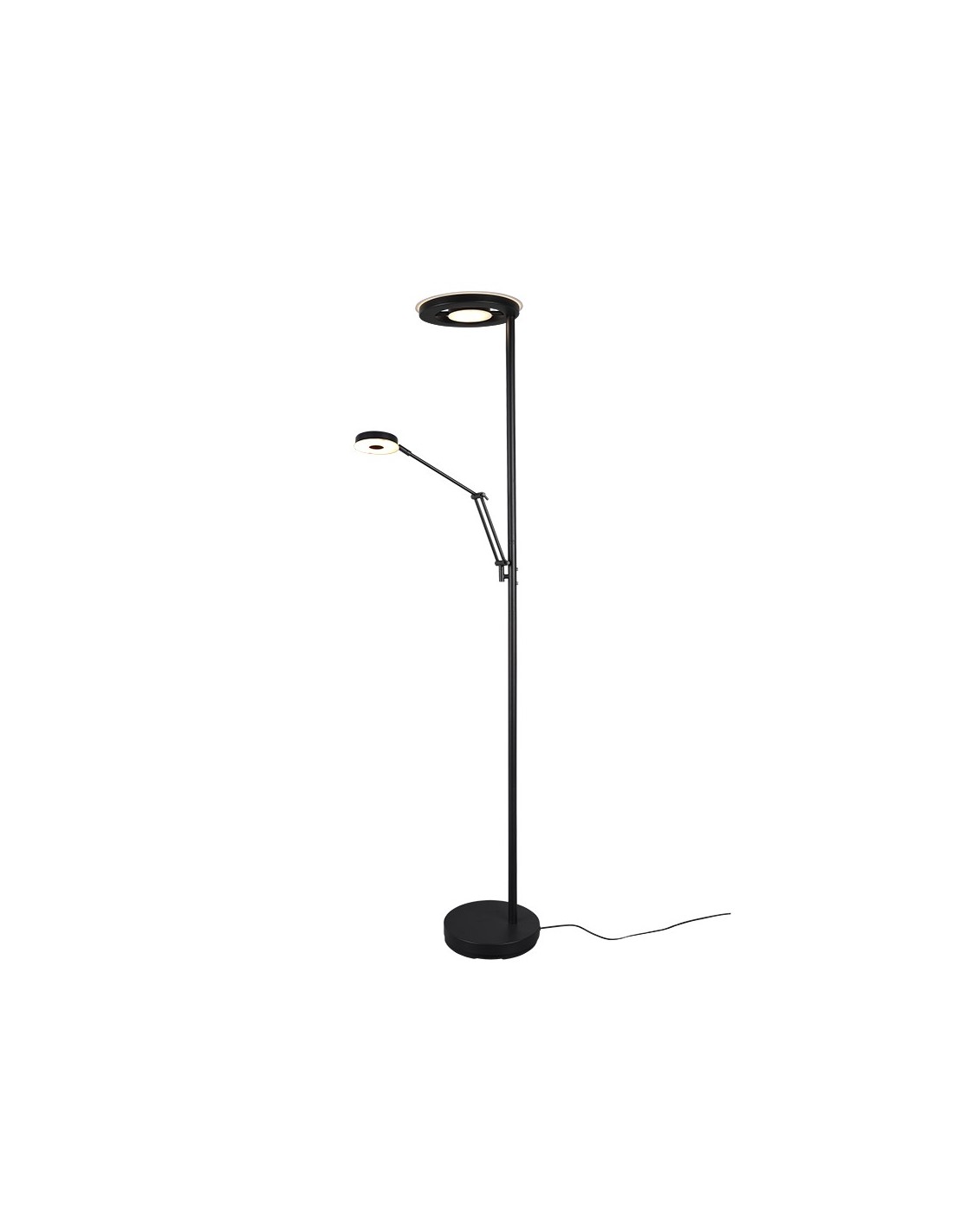 Trio 424210332. Lámpara de pie modelo Barrie con led incorporado de 32W. 2700K + 4000K. 700 Lumen. Cuerpo metalico. Pantalla color negro Dimensiones: altura 181cm, diámetro: 30cm. Pantalla: 70cm. Regulador con sensor. Función de memoria.